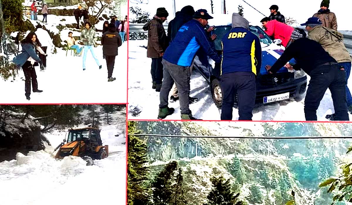 वहीं, त्यूणी-चकराता-मसूरी-मलेथा राष्ट्रीय राजमार्ग पर जमी बर्फ के चलते यात्रियों के सात वाहन फंस गए। जिन्हें एडीआरएफ की टीम ने सुरक्षित स्थानों पर पहुंचाया। पर्यटन स्थल धनोल्टी और सुरकंडा मंदिर के साथ ही फलपट्टी क्षेत्र में सोमवार सुबह छह बजे से बर्फबारी शुरू हुई। बर्फ गिरने की सूचना मिलते ही होटल के कमरों में कैद पर्यटक बाहर निकले और बर्फ में मस्ती करने लगे।